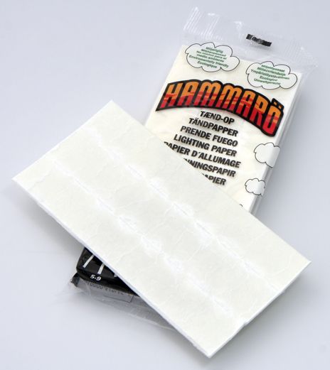 A flammable piece of impregnated material, which when pulled apart shows its fibrous nature producing an excellent complement to a flint and striker.