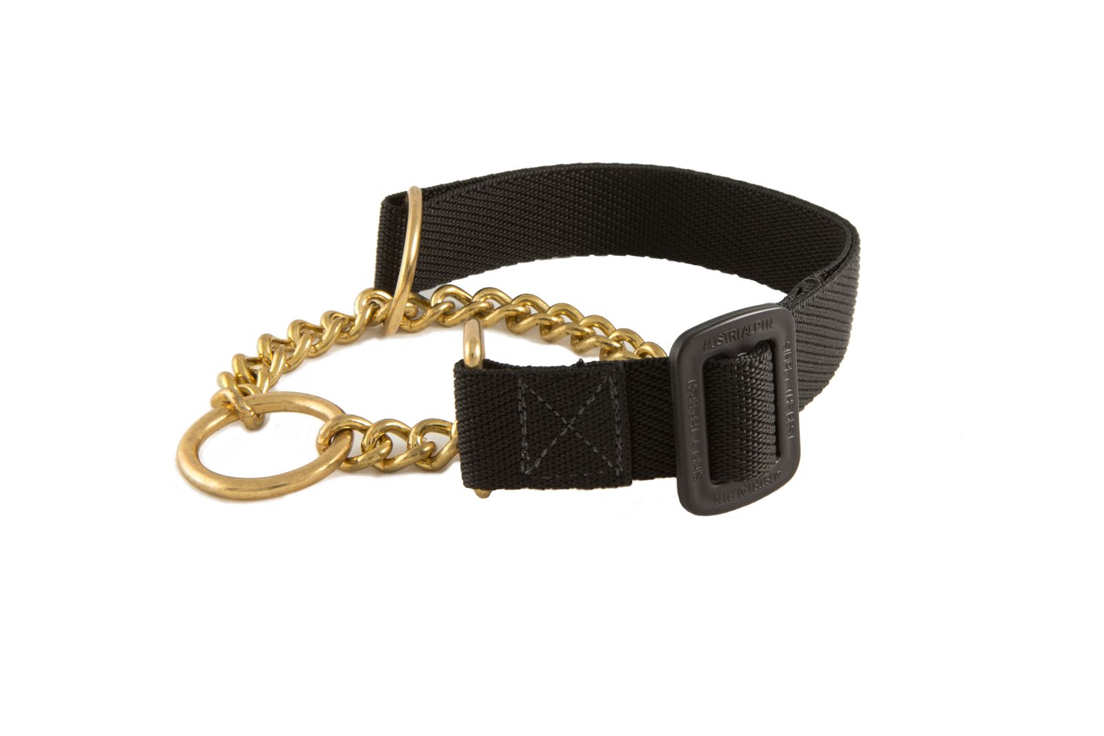 Half check collars, also known as martingale or combination/combi collars, are used in a similar way to a choke chain. The sound of the loose chain rings are designed to indicate to the dog that the owner is about to pull or jerk the lead as a means of taking control.