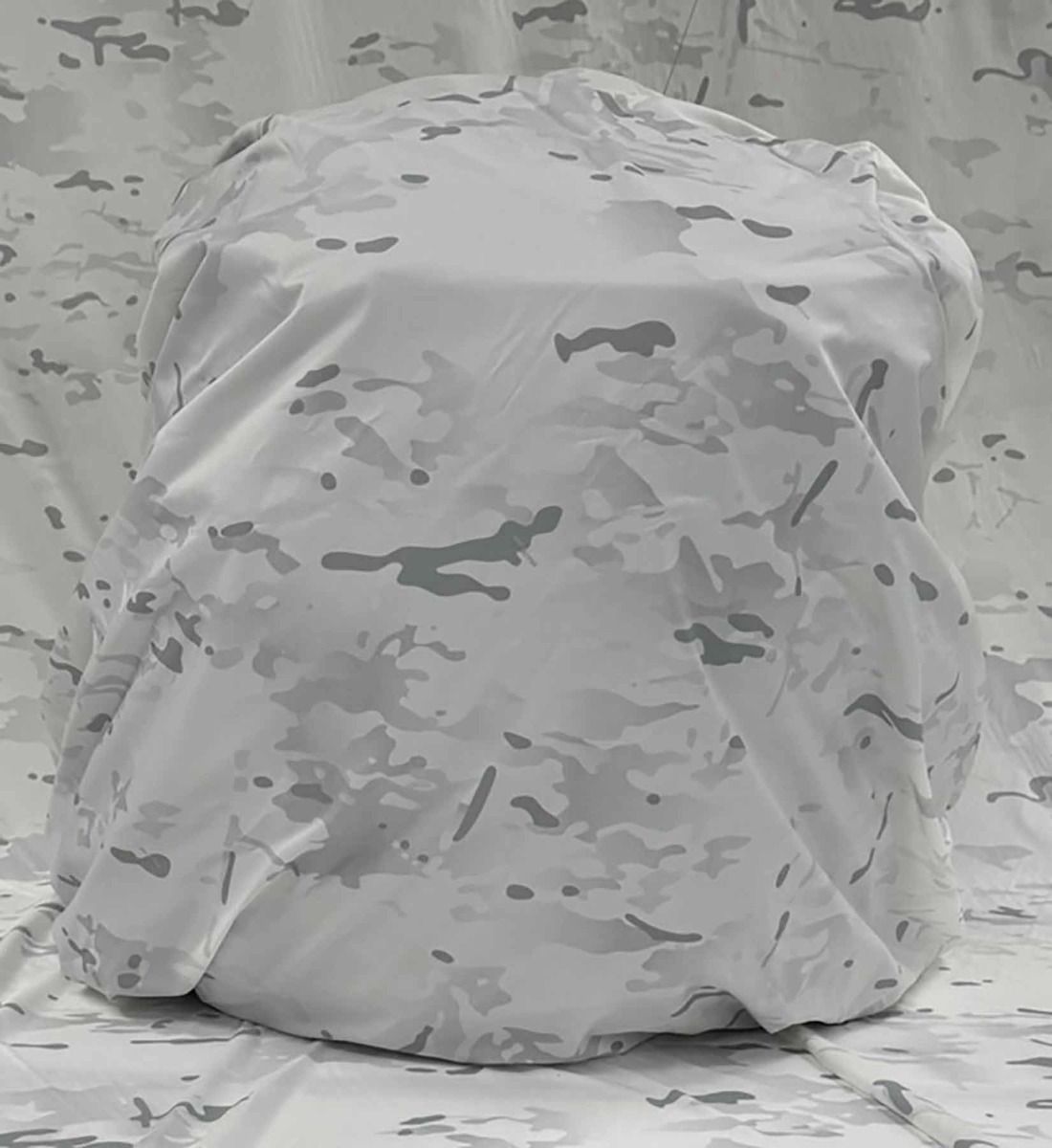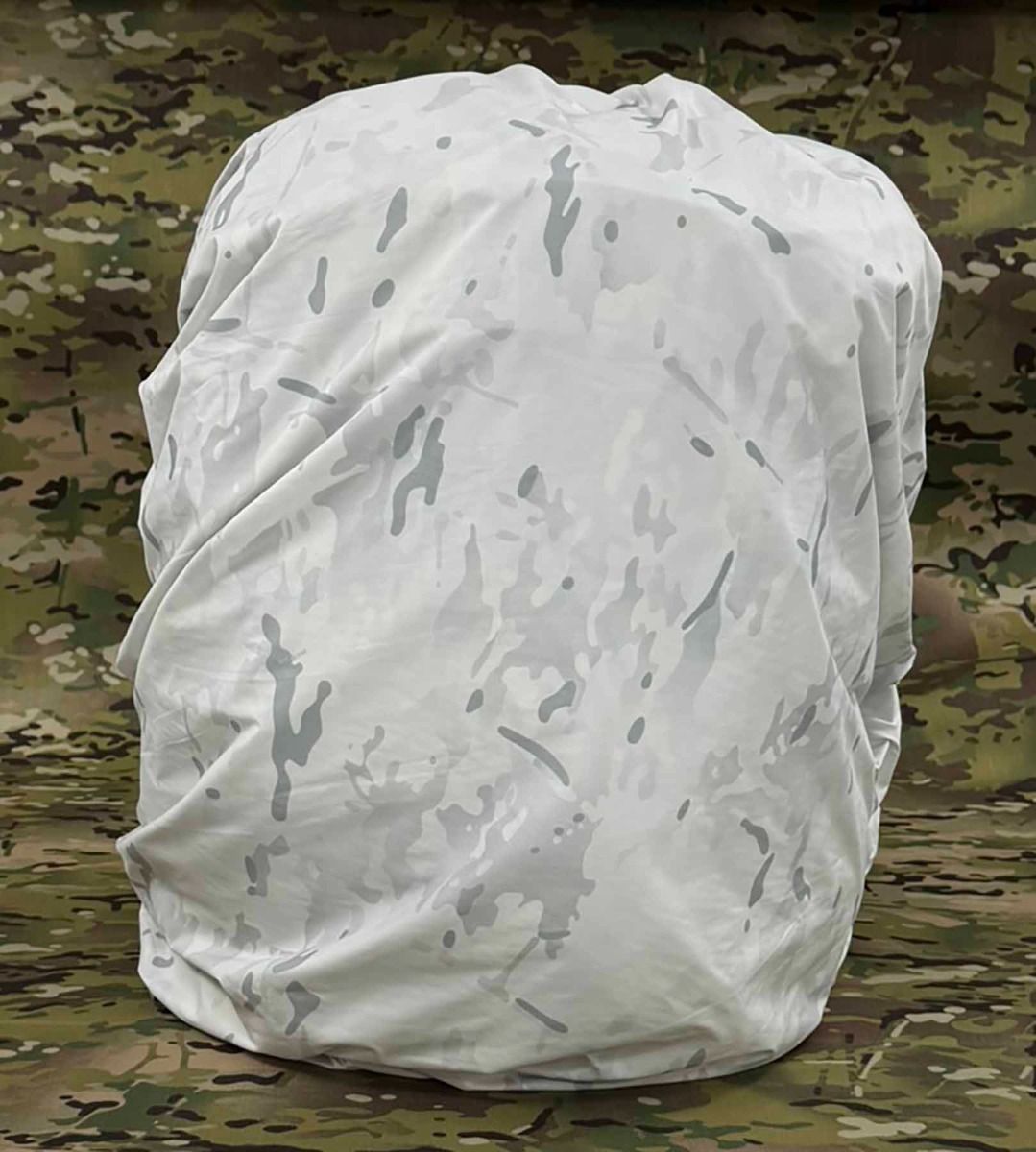The UKOM reversible rucksack cover combines advanced camouflage options with state-of-the-art fabric technology. One side is Multicam Alpine nylon for arctic and snowline concealment, while the other is classic Multicam, built from Quattro Assault — a 3-layer waterproof, windproof, breathable laminate engineered for durability and versatility.