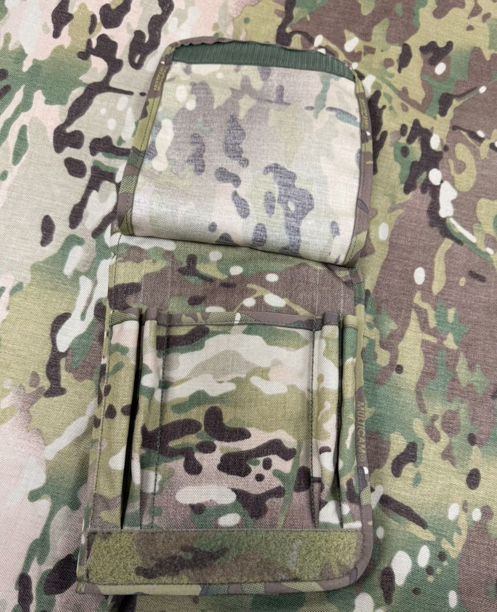 Tough, practical, and field-ready. This A5 cover fits standard Nyrex folders or ring binders and is made from waterproof, padded 100% IRR Crye Multicam Cordura. Features include a full zip closure, internal pencil loop, 4 pen/tool slots, and a boxed front pocket with Velcro flap. Designed for military, tactical, and outdoor use—100% UK-made and built to last.